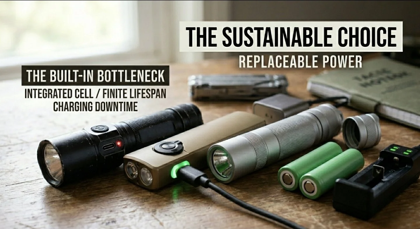 • Cost Efficiency: A high-end flashlight should last a decade. Built-in batteries force a "buy-and-toss" cycle that is both expensive and environmentally irresponsible.